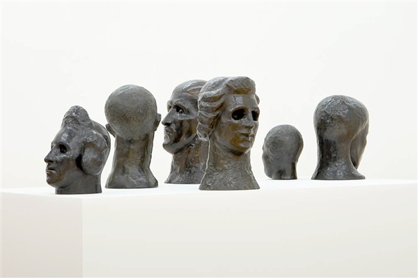 Sarah Peters's bronze portraits depict American outcasts, idealists, extremists, zealots, and visionaries. From early colonists to late 20th century religious cults, these are the believers who blindly follow conviction to extreme ends. Her heads, familiar from history but slightly strange, warp our expectations of traditional bronze busts. They are vessels for narrative, but it's left to the viewer to fill in the story. They are magnificent symbols heavy with implications, charged with touch and process, yet silent with hollow holes for eyes. Again it is the absent element that is most present, and through the absence we are invited to see.
