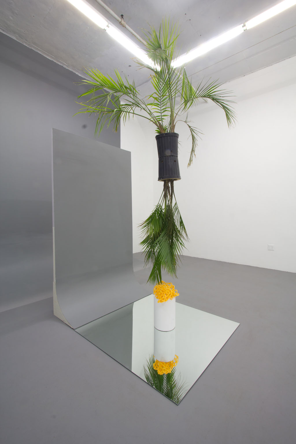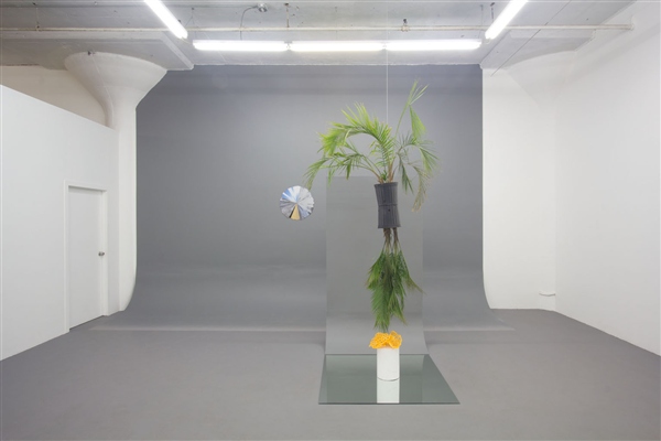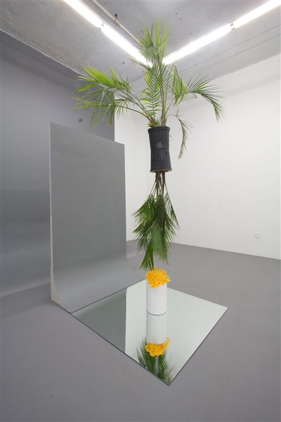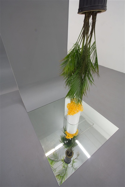 Set Piece: Houseplants Reflection 2012 houseplants, Cheetos, mirror, drywall, wood, sandbags, and paint 13 x 24 feet