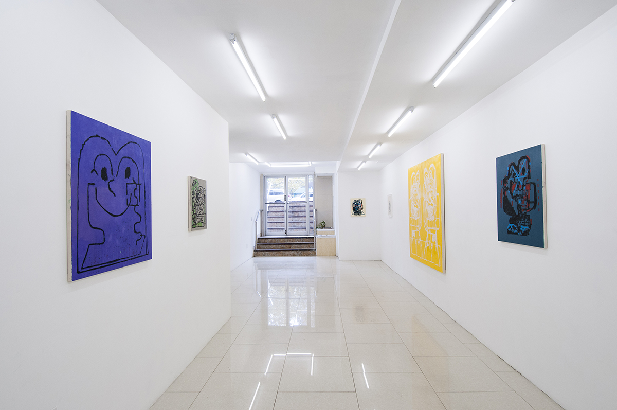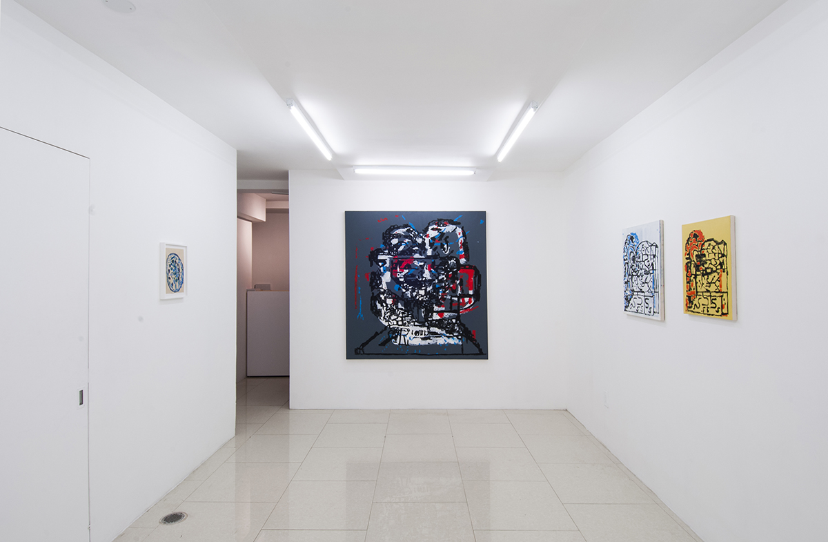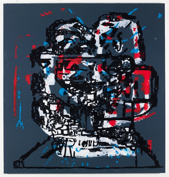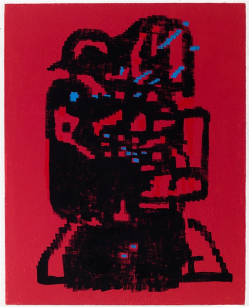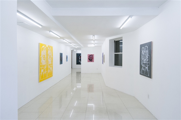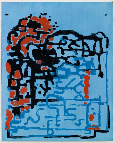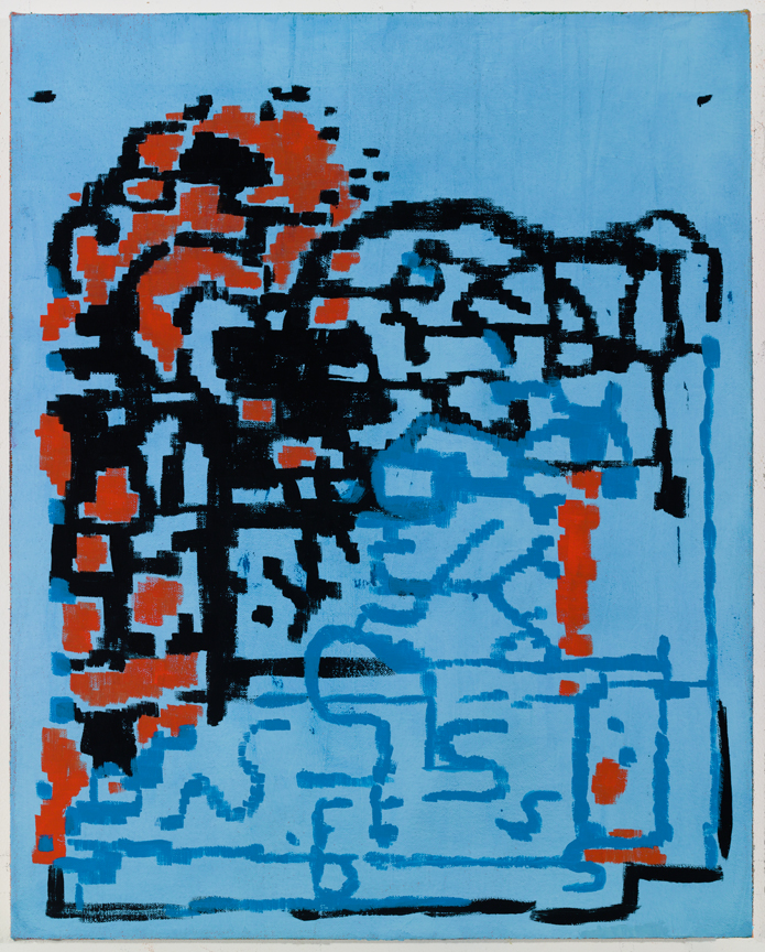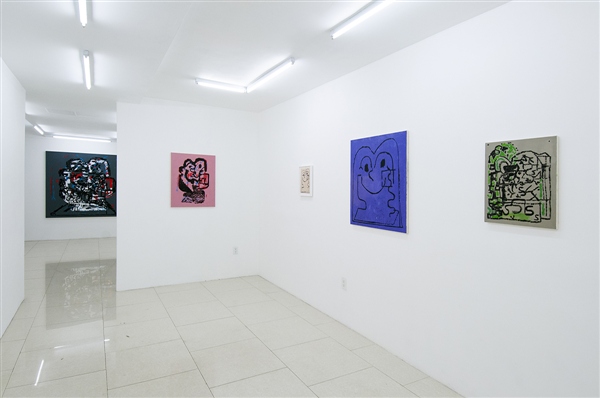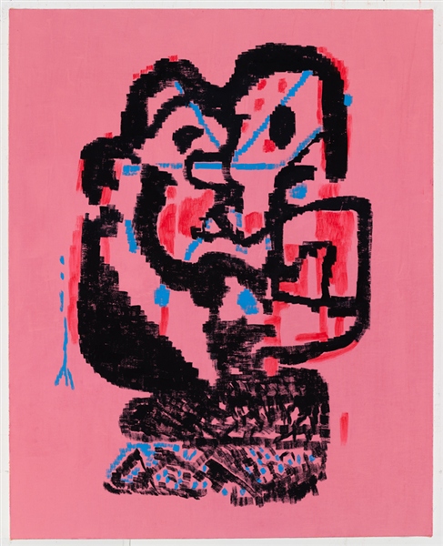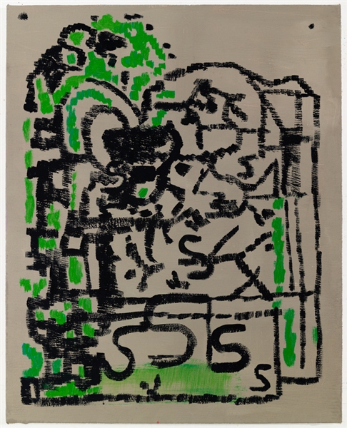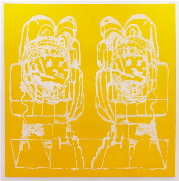 EJ Hauser’s new paintings use bold, rugged gestures to channel a totemic frog figure living in fields of deep, entrancing color. The power of the amphibian to thrive across multiple physical and mythological realms, informs the interconnected acts of drawing and painting in Hauser’s work. As each successive decision absorbs energy and knowledge from preexisting works, Hauser directly addresses the morphology of forms—both linguistic and biological—through "an intertwining of paint, intent and accident." Evolving from the marks and iconography of mountains, figures, numbers, and shields that have appeared in recent work, the amphibian acts as another means for Hauser to suggest the transformative potential of drawing and painting.