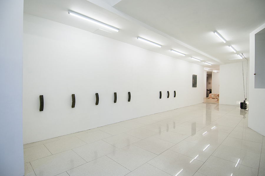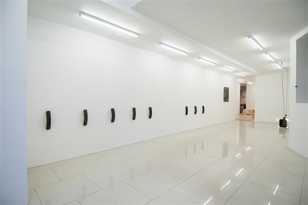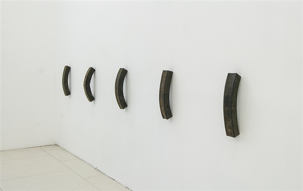 Matthew Schrader looks at the often imperceptible materials that drive the transportation of ideas, goods and bodies around the world. From his use of rare earth magnets culled from the inside of discarded hard drives to, in this case, spans of dense rubber used as gaskets to seal the windows on large cruise liners and cargo ships, Schrader isolates processed materials away from their specific functions so that their potent physical qualities overwhelm. Considering the properties of each component, Schrader builds flexible forms that examine forces both social and mechanical.